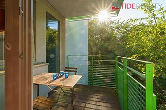 A very pleasant and quiet apartment located on the 3rd floor of a new building with an elevator offers a spacious living room with a fireplace, a fully equipped kitchen, 3 bedrooms, a study, a dressing room, 2 balconies, 2 bathrooms, an additional separate toilet, and a pantry. Built-in wardrobes, wooden floors, high-quality finishes. The apartment is practically fully furnished. The total living area of this furnished apartment is 160 m2. The rent includes a cellar and one parking spot in the underground garage. A potential second parking spot is available for a fee. The apartment is entirely facing green areas and is located just a 5-minute walk from Anděl metro station. Rent is 53.000 + 9,000 for utilities. Available immediately.