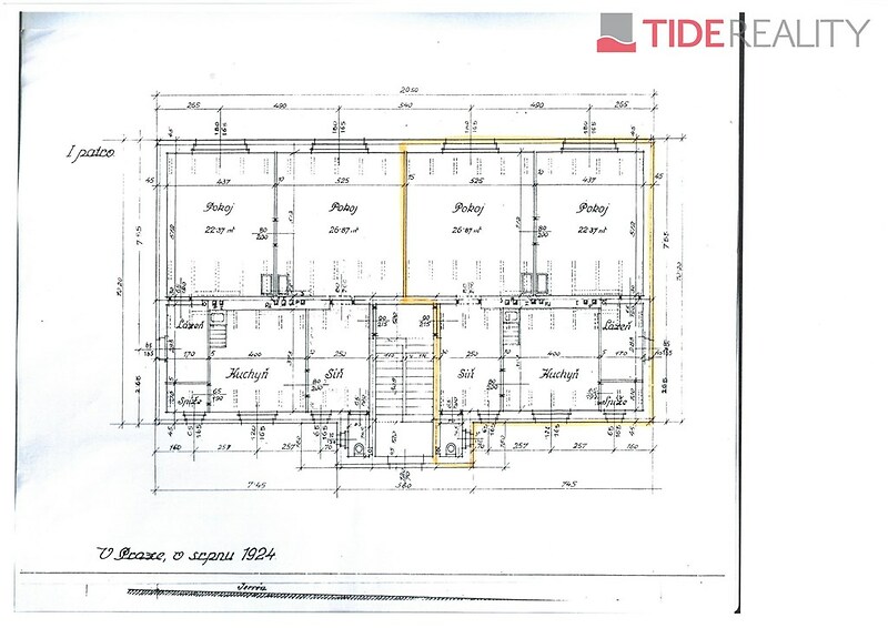 Apartment 2+1 (3+kk), 79 m² with a garden of 319 m² held in private ownership! This spacious apartment with an internal area of 79 m² is located on the first floor of a villa built in 1924, situated in a unique location near the Cibulka forest park in the Prague district of Košíře. The apartment is in its original condition and is currently inhabited. Its current layout consists of a living room, one bedroom, a kitchen, a bathroom, a separate toilet, and a hallway. A renovation, which is necessary, can transform it into a two-bedroom apartment with kitchentette (3+kk). The living room and bedroom face west, while the kitchen (which can be converted into a second bedroom) faces east. The rooms are large and beautiful, with views of the greenery. The apartment includes a cellar (11.25 m²). The sale also includes a garden of 319 m² held in private ownership, located directly next to the house. Nearby is the Slunéčko kindergarten and Nepomucká elementary school. The area offers sports facilities (tennis and squash courts) and for recreation, there is the Cibulka forest park, featuring a children's playground and which seamlessly connects to the Vidoule natural monument. At first glance, the atmosphere is calm and almost rural, yet in just a short while, you can be at Smíchov’s Anděl district, bustling with the hustle and bustle of the city. Here, you will find restaurants, cafes, a cinema, and shops in the Nový Smíchov shopping center or its surrounding area. A quick connection to the historic core of Prague is an added bonus. Excellent public transport accessibility, with a bus directly on the street and a tram stop 5 minutes’ walk away, both taking you directly to the Anděl metro station in a few minutes.