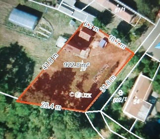 Beautiful building plot in the village of Zamachy, on the edge of the settlement of Chaloupky, right next to the forest, in complete peace, sunny, without noise from surrounding traffic. The plot has a total area of 3638 m2, is flat and partly sloping, with a connection to water and electricity. Wastewater is treated with a septic tank. Fruit trees (apple, cherry, sour cherry, apricot, plum) and small shrubs (gooseberry, currant, grape, sea buckthorn, hazel) are planted here. According to the zoning plan, these are mixed residential - rural areas, for housing in houses and farmsteads with economic facilities, service sector and/or non-disturbing production activities. The maximum building height is two floors above ground with the possibility of using the attic. Currently, there is a wooden cottage on the plot with electricity and water installed. On the ground floor there is a room with an equipped kitchenette (dishwasher, sink), washing machine, shower, stove and French windows leading to a covered terrace. In the upper part, which is accessible by an external staircase, there is a bedroom (4 beds). There is also a small house/workshop with electricity, a cellar, a dry toilet, a woodshed and a frame for a greenhouse. The land is surrounded by a wire fence and there is a metal entrance gate. There is a bus connection to Mladá Boleslav in the village, there are nice neighbors and a functioning village. In the next village there is a shop, post office, municipal office and pub. It is about 40 minutes to Prague (Černý most) and 25 minutes to Mladá Boleslav by car.