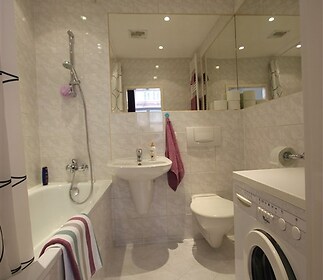 Beautifully renovated, spacious 2+1 apartment (70m2), furnished with furniture, with a fully equipped kitchen in an Art Nouveau building just a few steps from the waterfront. The apartment consists of a living room, separate kitchen, bedroom, bathroom with toilet, dressing room, and separate toilet. The apartment is located on the 3rd floor with an elevator. The apartment has parquet floors and tiles in the hallway and bathroom. Energy performance certificate (EPC) rating C. Available from May 15, 2026. The immediate area offers all community amenities, including restaurants, cafes, a supermarket, shops, and the Karlovo náměstí metro station - Line B is just a 5-minute walk away. Rent is 28,000 CZK/month + 6,000 CZK/month for advance payments for services and energy.