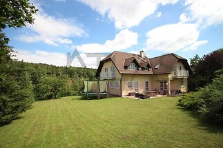 For Rent: Beautiful new 303 sqm 7-bedroom family house with large garden. The ground floor includes a large living room with a fireplace and entrance to the terrace, one bedroom, a hobby-room, a fully-fitted kitchen (with a stove, fridge, freezer, and dishwasher), a bathroom and toilet. The first floor includes four bedrooms, a study, walk-in closet, bathroom and toilet. There is laminate flooring in all rooms and tile in the kitchen and bathrooms. The basement is a garage for 2-4 cars. The house has a 850 sq.m. garden. It is located in a quiet and well-kept area close to International School and has a view of the forest. For more details and to manage a visit, call English speaking agent Jan, phone (+420) 775 609 626
