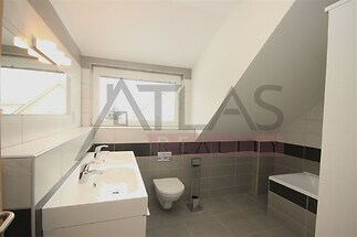 For rent two storey family house (three- bedroom) 170 sq. m. in very quiet location of Prague 6 - Nebusice. The house is new, was built in 2013, the ground floor comprise of living room with fully fitted modern kitchenette, bathroom and utility room with boiler, laundry - washing machine and dryer. The kitchen is fully equipped with stove, refrigerator, dishwasher, extractor hood. On the first floor 3 bedrooms and another bathroom with bath tub, two sinks and WC, one bedroom has walking closet. The house has a garage for one car. Around the house is nice well maintained garden with terrace (15 sq.m.) accesible from the living room. A sought-after residential location with mostly family houses in Prague 6, surrounded on three sides by the Nature Park Sarka. Nebusice has good transport accessibility. The Borislavka metro station can be reached by public bus in 11 minutes, the motorway in 7 minutes and the Vaclav Havel Airport in 14 minutes. Within walking distance you will find complete civic amenities - a supermarket, post office, municipal office, pharmacy, general practitioners' offices, cafes and restaurants. Directly in the locality there is a kindergarten, primary and art school and prestigious international schools - International School of Prague, Riverside School, Prague British International School. For leisure activities you can use tennis courts, 2 swimming pools, children's and workout playgrounds or the Nature Park Sarka. The inquiring client agrees to pay a commission of 1 month's rent. For more details and managing visit call English speaking agent Vladimír, phone (+420) 608 11 44 11.