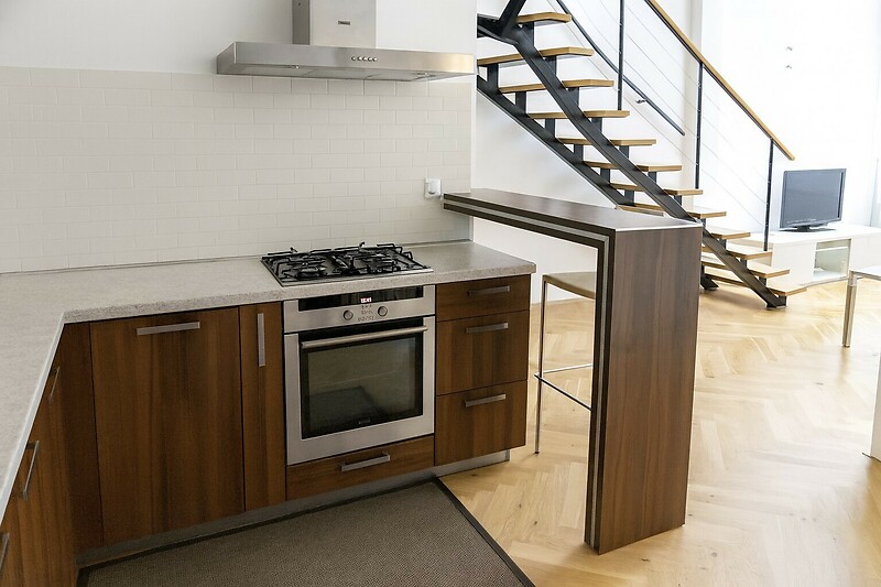 For sale one bedroom duplex apartment 2 in personal ownership on the 5th floor of a renovated apartment building with an elevator in a sought-after location in Prague 2 - Vinohrady, on Záhřebská street, just a few minutes walk from Náměstí Míru. The furnished apartment of 74.4 sqm with a terrace of 10.7 sqm offers an entrance hall on the lower floor, a spacious living room with a dining area connected to a fully equipped kitchen and a toilet. On the upper floor there is one bedroom with access to a terrace facing the courtyard, a bathroom with a bathtub and toilet, a storage room with a washer/dryer and a gas boiler. The bedroom has built-in wardrobes, parquet and tile floors. Attractive location of Vinohrady with all amenities and excellent transport connections, tram and metro stations are just a few minutes walk from the house. There are many cafes, bistros, restaurants, shops, and the popular Havlíčkovy sady park in the vicinity.