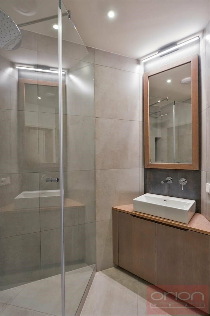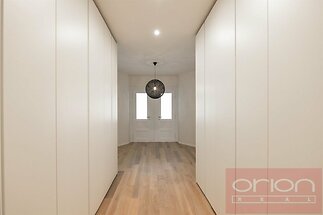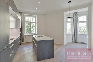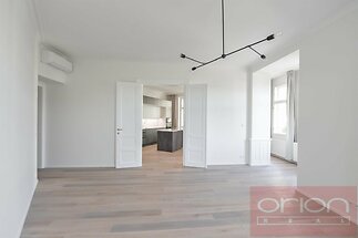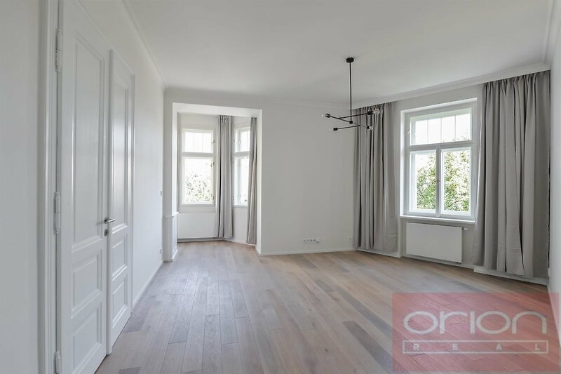 High quality renovated air-conditioned two bedroom - two bathroom furnished flat on the 2nd floor of a renovated art nouveau building with a lift, situated in an popular location of Prague 3 - Vinohrady, just a few steps from the metro station and tram stop Jiřího z Poděbrad. The luxurious apartment with a total area of 138 m2 offers an entrance hall, a living room with a dining area and a fully equipped kitchen, 2 bedrooms, 2 bathroom with a shower, a bathtub and a toilet, and separate toilet. Oak wooden floors and tiles, the apartment is equipped with built-in wardrobes, a wine cellar, a washing machine, a dryer, a security entrance door, and a gas boiler. Near the building is the popular park Riegrovy sady, restaurants, shops, farmers' markets are regularly held on Náměstí Jiřího z Poděbrad. There is an excellent transport connection to the center from there, the subway and tram stations Náměstí Jiřího z Poděbrady are a few minutes' walk away. The surroundings offer plenty of greenery, ideal conditions for sports and relaxation. The parking must be rented with a flat for the fee 6.500 CZK +VAT21% per month.