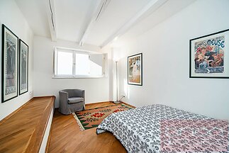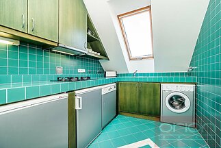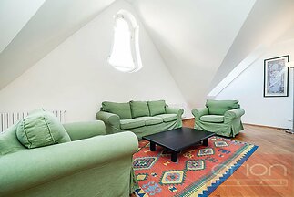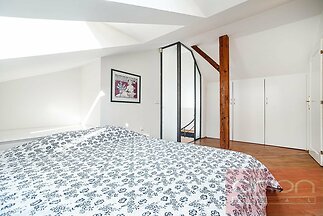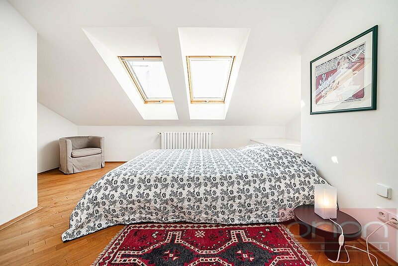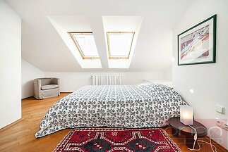 Luxurious, furnished, two bedroom duplex apartment on the 5th and 6th floor of a renovated building with a lift and views of Prague Castle. The apartment has a total area of 108 sqm and offers on the lower floor entry hall, fully fitted kitchen, living room with dining room, bedroom with dressing room, bathroom with shower, storage room. On the upper floor there is entry hall with built-in wardrobe, large bedroom with walk-in closet, bathroom with tub and views of Prague. Just a few steps from Karlovo náměstí metro station, within a short walk to tue Wenceslas Square, shops, restaurants, cafes.