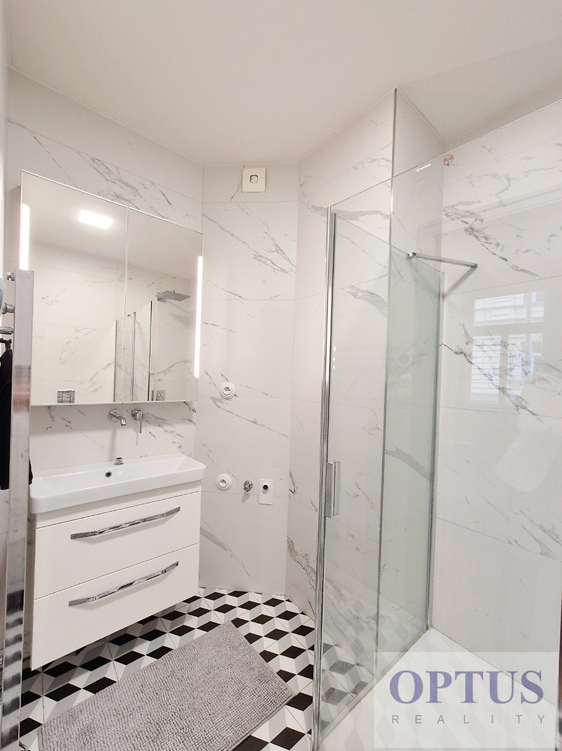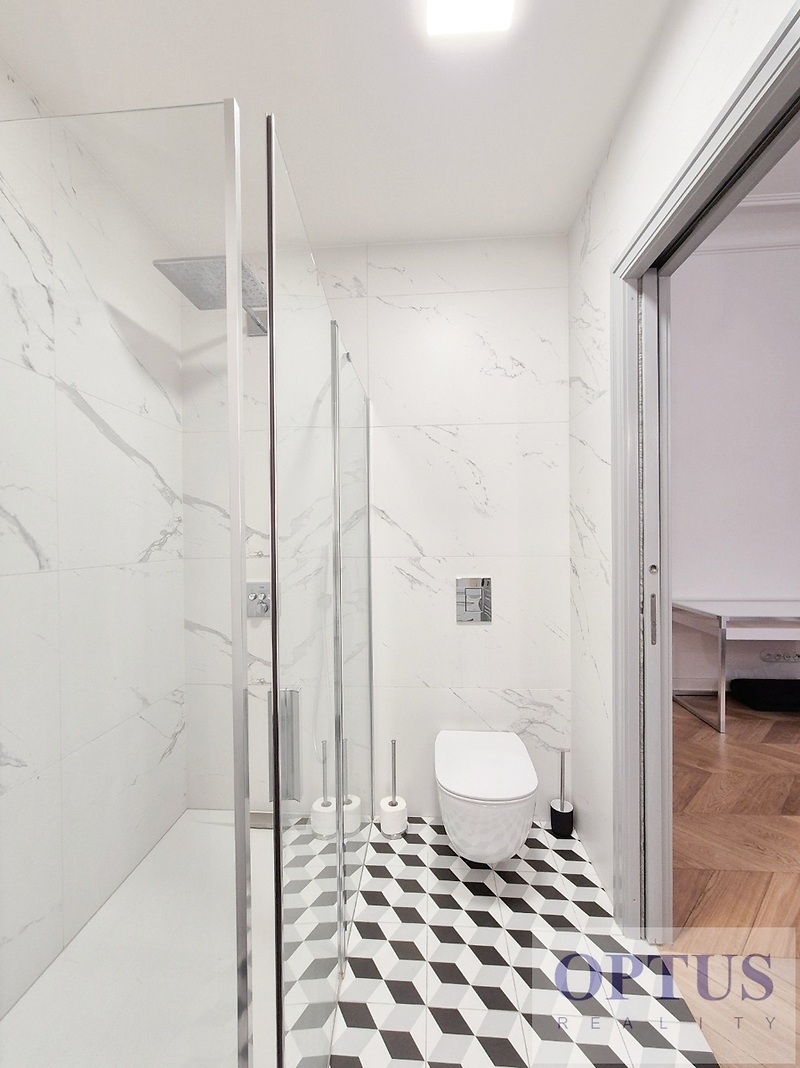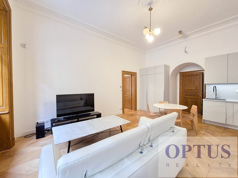 Prague 2 – Vinohrady, Italská street – located in a very popular residential area next to the náměstí Míru subway station, with a perfect access to the city centre (Wenceslas square is just 5 minutes by walk) and nearby living area with many bars, restaurant, shopping and sport amenities. Fully furnished luxury apartment size 2 + kitchen corner (in area of 60 m2) on the 2nd above floor of a representative Art Nouveau house with an elevator. The apartment was completely renovated in a high standard, has high ceilings and a view of the quiet Mánesova street. The entrance hall of the house was completely renovated in 2024 in the original Art Nouveau style. The interior consists of a spacious living room with a modern kitchenette, and a bedroom with access to an elegant bathroom with a shower and toilet. Other equipment: design furniture by Vitra – see photos, fitted kitchen unit with built-in high quality appliances (induction cooking hob, electric oven, dishwasher, refrigerator with freezer, and exhauster), also Tv set, built-in wardrobes in the living room and in the bedroom, interior sun blinds, hard wood parquets, and the apartment is heated by a gas boiler. Price 29,000 CZK/month + utilities including energies 4,000 CZK/month + internet + agency fee of 1 month´s rent. Security deposit makes 2-months’ rent. The Real Estate agency has not the energy label of the property at disposal, therefore we classify the energy performance level “G”.