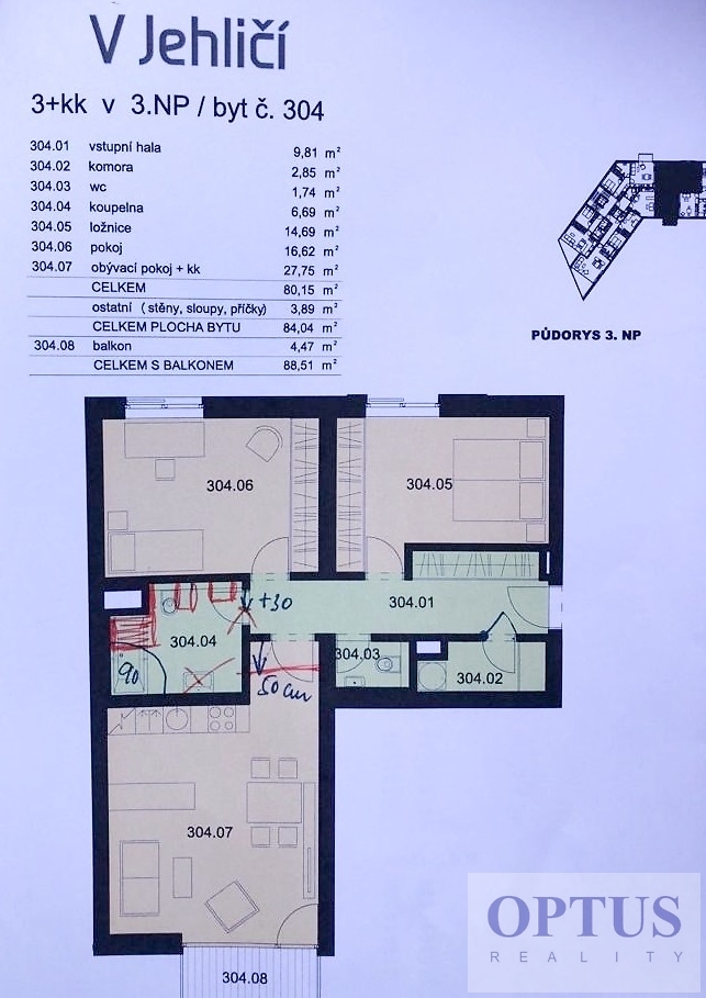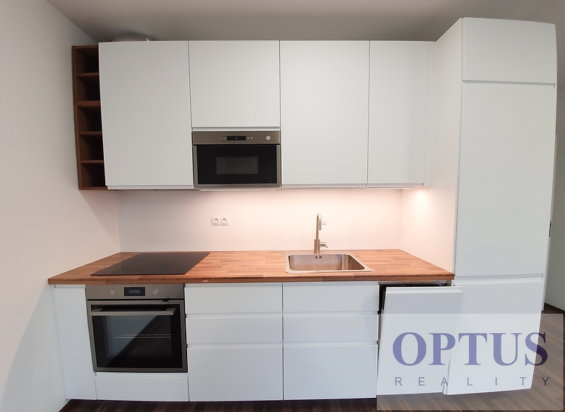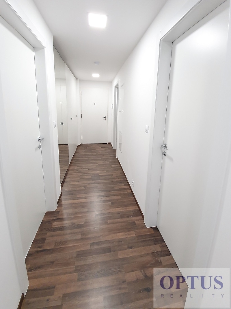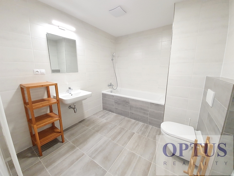 Prague 4 - Krč, V Jehličí street – located in a quiet residential area in the neighbourhood of Kunratický Forest and the Nový PORG school, area with a full spectrum of amenities within easy search and good access to the city center (bus connections to the Kačerov metro station with a bus stop Vídeňská 1 minute walk from the house) and to the PBS, EISP a IMSP (Montessori) schools. Modern unfurnished apartment size 3 + kitchen corner (in area of 84 m2) + balcony of 4.5 m2; situated on the 2nd floor with lift in a new residential building finished in 2020. The apartment consists of a living room of 27.8 m2 with a fully fitted kitchen and with a balcony – south orientation, two bedrooms (16.6 m2 and 14.7 m2) with a view of a park - north orientation, one full bathroom (with a bath tub and toilet), a separated toilet, a storage room, and an entrance hall with a spacious built-in wardrobe. Other equipment of the apartment: a fully fitted kitchen unit including built-in appliances (refrigerator with freezer, cooking hob, oven, microwave, and dishwasher), also washing machine, dryer, interior sun blinds, cabling for high-speed internet connection (up to 1 Gb/s), laminated floors, and central heating. There is one basement storage unit of 2,6 m2 included in the rent; possible to rent 1 outside parking place for extra charge of 1,500 CZK/month. Available from June 1, 2026. Price 30,000 CZK/month + utilities (services charge of 5,000 CZK/month + electricity in the apartment) + internet cost + agency fee of 1 month´s rent. Requested security deposit of 1 month´s rent including utilities. The Real Est ate agency has not the energy label of the property at disposal, therefore we classify the energy performance level “G”.