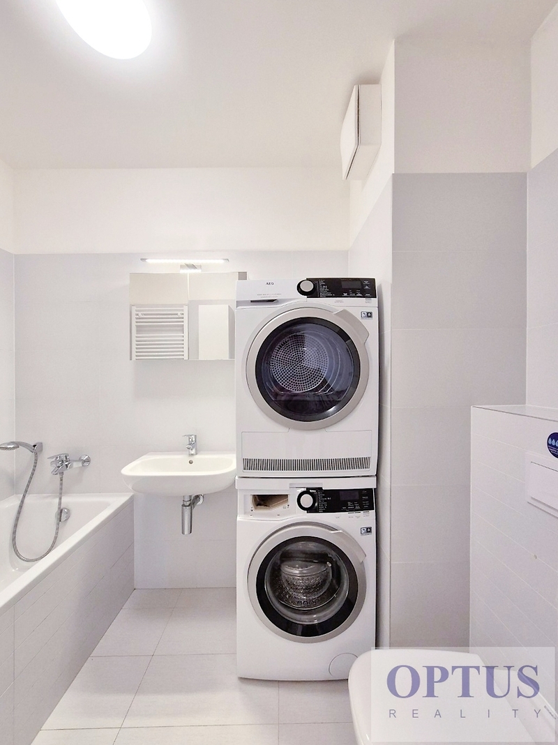 Prague 5 – Jinonice, Pod stolovou horou street - popular residential area next to the German School and Vidoule Nature Park, in a walking distance to subway station Nove Butovice, nearby shopping mall Galerie Nove Butovice, area with perfect public transport to the city centre and perfect access to the highways D5, D1 and to the airport. Modern furnished apartment size 4 + kitchen corner (in area of 86.7 m2) + terrace 27 m2 and balcony 5.5 m2; situated on the 2nd above floor with lift in a new residential building – part of residential complex Botanica; the apartment is currently furnished according to photos. The apartment consists of a living room with a fully fitted kitchen and access to the terrace and loggia, 3 bedrooms – one bedroom with access from the living room convenient as a study room, 2 full bathrooms (with a bath tube / shower and toilet), cloakroom, and an entrance hall. Additional equipment: fitted kitchen including built-in appliances ( refrigerator with freezer, cooking hob, oven, microwave, and dishwasher); also washing machine, dryer, built-in wardrobes, cabling for high-speed internet (up to 1 Gb/s), outside safety sun blinds, wooden floors and tiles, and central heating. The rent includes 1 basement storage unit and 1 garage parking spot in the building, another garage parking is possible for extra charge of 1,850 CZK/month. Price 45,000 CZK/month + utilities (service charge of 6,500 CZK/month + electricity in the apartment 2,000 CZK/month) + internet cost + agency fee of 1 month´s rent. Requested security deposit of 2 months´ rent. The energy performance level of the building was classified according to Order 78/2013 Coll. as “B”.