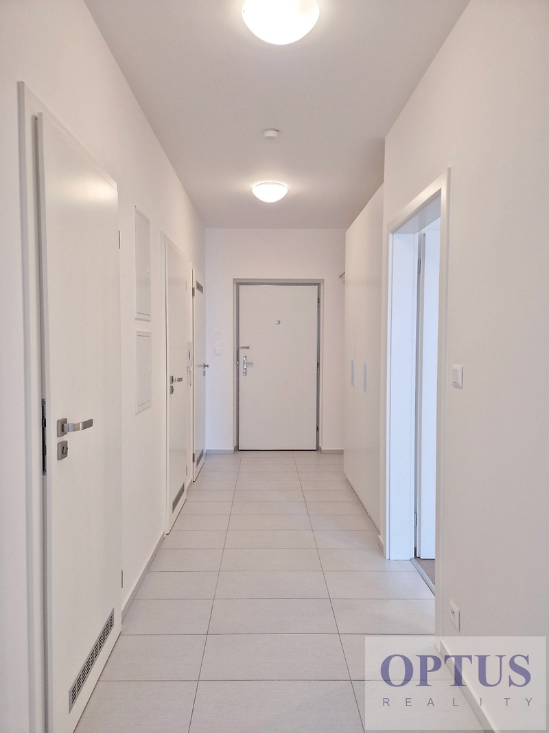 Prague 5 – Jinonice, Pod stolovou horou street - popular residential area next to the German School and Vidoule Nature Park, in a walking distance to subway station Nove Butovice, nearby shopping mall Galerie Nove Butovice, area with perfect public transport to the city centre and perfect access to the highways D5, D1 and to the airport. We offer an unfurnished, modern apartment size 2 + kitchen corner (in area of 56.8m2) + balcony of 5.2 m2 - west orientation; situated on the 4th floor with lift in a new residential building – part of residential complex Botanica. The apartment consists of a living room connected with a fully fitted kitchen (in total area of 23.9 m2) and with an access to the balcony, one bedroom of 12.7 m2, one full bathroom (with a shower and toilet), and an entrance hall with a built-in wardrobe. Other equipment of the apartment: a fully fitted kitchen unit including built-in appliances (cooking hob, electric oven, dishwasher, and refrigerator with freezer), also washing machine combined with dryer, the apartment also has cabling for high-speed internet connection (up to 1 Gb/s), wooden floors, outside safety sun blinds, NEXT safety door, and central heating. The rent includes 1 basement storage unit of approx. 3 m2 and 1 garage parking place. Preferred is a tenant without pets. Price 24,500 CZK/month + utilities (services charge of 5,200 CZK/month + electricity in the apartment) + internet cost + agency fee of 1 month´s rent. Requested security deposit of 2 months´ rent. The energy performance level of the building was classified according to Order 78/2013 Coll. as “B”.
