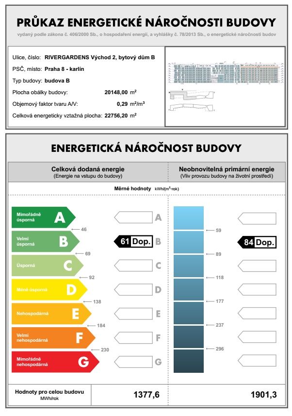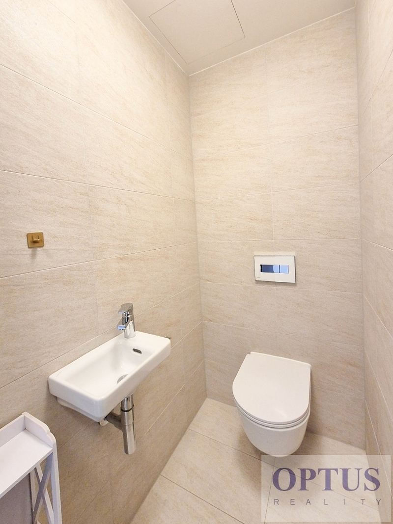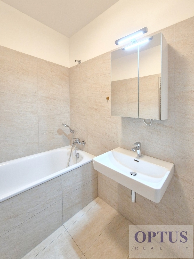 Prague 8 - Karlín, Za Karlínským přístavem street - located in one of the most popular and dynamically developing districts in Prague, just 1 minute by walk from the subway station Křižíkova, living area with many stylish coffees, restaurants, full amenities and quick access to the city center. Brand new unfurnished apartment size of 2 + kitchenette (in area of 57.4 m2) + balcony of 7.3 m2 with a view of the Vltava River; situated on the 2nd above floor in the brand new residential project Port Karolina with a lift. The apartment consists of a living room of 27 m2 with a fully integrated open-plan kitchen and with an access to the balcony, a bedroom of 15.5 m2, a bathroom with bathtub, an extra toilet, a storage room, and an entry hallway. Additional equipment: kitchen unit equipped with an induction cooking hob, an electrical oven, a dishwasher, and a refrigerator with freezer; also washing machine, cabling for high-speed internet connection (optical cable 1 Gb/s), exterior sun blinds, wooden floors and tiles. The rent includes 1 brick cellar and 1 garage parking lot in the basement of the residence. Preferred client without pets. Price 30,000 CZK/month + utilities (service charge 6,200 CZK/month + electricity in the apartment) + internet + agency fee of 1 month´s rent. Required a security deposit of 2 month´s rent. The energy performance level of the building was classified according to Order 78/2013 Coll. as “B”.