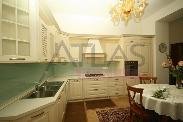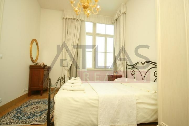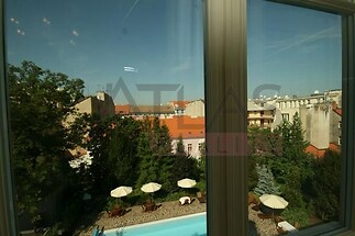 Rental of a fully furnished duplex apartment 2+kk (69 sqm) on the 4th floor with an elevator in a prestigious classical Art Nouveau building with high ceilings and original decorations, completely renovated in 2006. The building is located in a residential area of the historic center of Prague, only 200 meters from Riegrovy Sady park, 300 meters from the Metro station line A - Náměstí Míru, and 500 meters from Wenceslas Square - Metro station Muzeum, lines A and C and the shopping and cultural center of Prague. The apartment is completely furnished with pseudo-antique Italian furniture. It consists of a living room of 37 sqm with a kitchenette equipped with a refrigerator with freezer, dishwasher, gas stove, and extractor hood, a bedroom of 12 sqm, a bathroom with a sink, corner bathtub, toilet, and bidet. The apartment has a telephone line, high-speed internet, TV, satellite, parquet floors and tiles, and high-standard materials were used during the renovation. The building has underground garages, an elevator, and a large swimming pool in the courtyard, 8 x 11 meters and 1.2 meters deep, with a hydromassage area, surrounded by a terrace and greenery. There is also a CCTV system, security, and a caretaker in the building. Garage parking is for a fee, and the use of the pool is included in the price. The price does not include fees which are approximately 450 EUR per month. For more details and managing visit call English speaking agent Jan, phone +420 775 609 626.