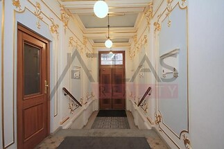 Rental of a renovated unfurnished 2+kk apartment (91 m2) on the 3rd floor of a renovated building with an elevator. The apartment is offered with a fitted kitchen equipped with a stove, microwave, dishwasher, fridge, and freezer. Heating is provided by a gas boiler in each apartment, and an electronic security system is installed. The flooring includes tiles and parquet. The bathroom features a bathtub, toilet, bidet, and space for a washing machine. Parking for personal vehicles is available in garages within the building, serviced by an elevator on three floors. The garages are monitored by a camera system. It includes permanent high-speed internet connection, connection of the electronic security system to a centralized protection desk, and flat monthly fees associated with telephone operation. Charges 5000 CZK, 1 garage parking space 4500 CZK + 700 CZK charges. A short walk from the Náměstí Míru metro station. For more details and managing visit call English speaking agent Jan, phone (+420) 775 609 626