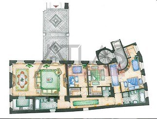 Rental of an apartment 4+1, 178 m2, on the 2nd floor. Prestigious baroque era apartment, spacious living room with dining area, interior design and finishing work at a very high level. Two entrances, 35 m² terrace (living room, dining room, kitchen, 3 bedrooms, 2 bathrooms, pantry, 3 walk-in closets). Partially furnished, suitable for 6 people. Two entrances: the first directly from the elevator. Living area: living room with dining area, fully equipped kitchen, pantry. Sleeping area: connected by a large entrance hall, 3 bedrooms with 3 walk-in closets, 2 bathrooms with bathtubs, one with a spacious shower box. Large south-facing terrace. Utilities, services, or charges for common areas are not included in the rent. Pets are allowed.