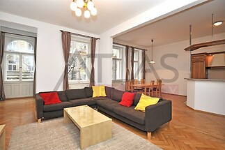 Renting a new furnished apartment 3+kk, area 119 m2. Living room with a kitchenette equipped with a stove, microwave oven, dishwasher, fridge, and freezer, two bedrooms, bathroom with bathtub and toilet, another separate toilet. The heating is provided by a gas boiler in each apartment, and an electronic security system is installed in the apartment. Rent 37,000 CZK, fees 6,500 CZK. Parking of personal vehicles is possible in garages directly in the building, served by a car elevator on three floors. The apartment has parquet floors and tiles. If interested in parking, the price for renting one garage space is 4,500 CZK plus a 700 CZK deposit for services ensuring the operation of the garage. Mánesova street is a popular location near Jiří z Poděbrad Square. Close to the center with excellent transport accessibility. For more information or to arrange a showing, please feel free to call our English speaking agent Jan at (+420) 775 609 626.