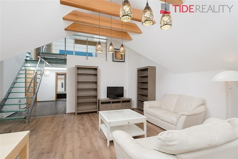 The high-quality and very bright apartment is situated on the top floor of a building in a very quiet location near a park. Its total living area is 140 m². The modern unfurnished apartment is designed as a duplex: on the first level, there are 2 bedrooms (one with a balcony), an open living room with a fully equipped kitchen, a large bathroom with a bathtub, and a toilet. The second floor consists of a bedroom, a bathroom with a shower and toilet, a gallery, and a roof terrace with a beautiful view. Grébovka Park is right in front of the building, hassle-free street parking, all amenities are within walking distance. The Míru metro station is approximately an 8-minute walk. Rent is 60,000 CZK, with service charges of 12,000 CZK. Available immediately. Energy performance rating C.