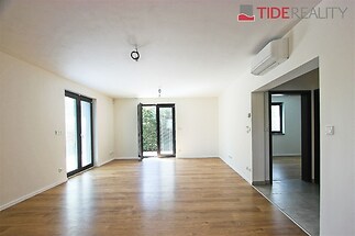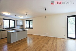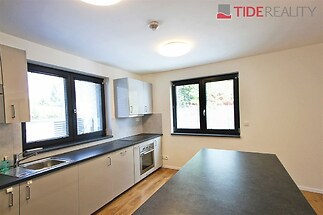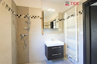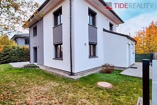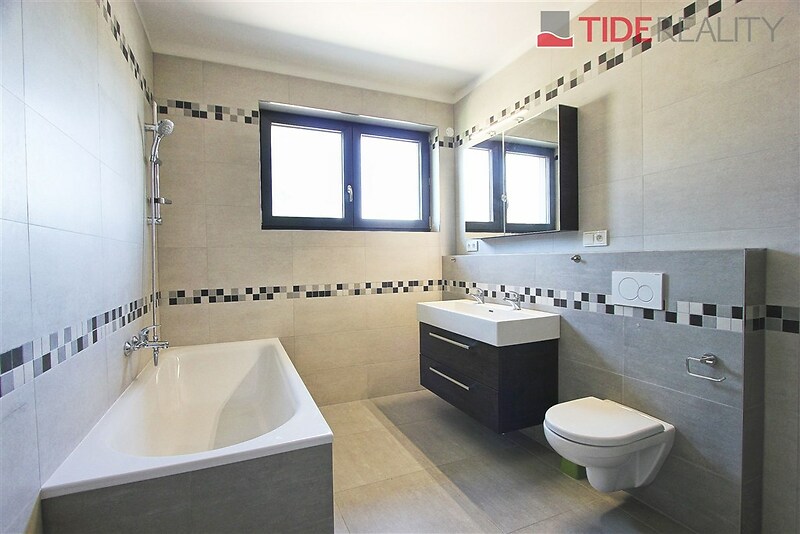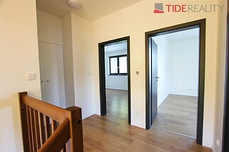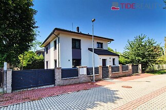 The new family house (5 + kk, 156 m2) is located in a quiet part of Šeberov (Hrnčíře). The ground floor has an entrance hall, a large living room with a kitchenette (42 m2) and direct access to the terrace and garden, bedroom, bathroom and pantry. The first floor consists of 3 bedrooms, 2 bathrooms and a dressing room. The entire house is air-conditioned, connected to an optical cable, and has 2 outdoor parking places on the property. Energy efficiency class B.
