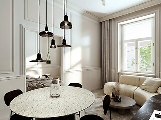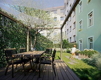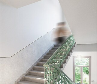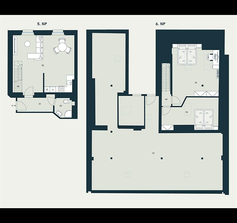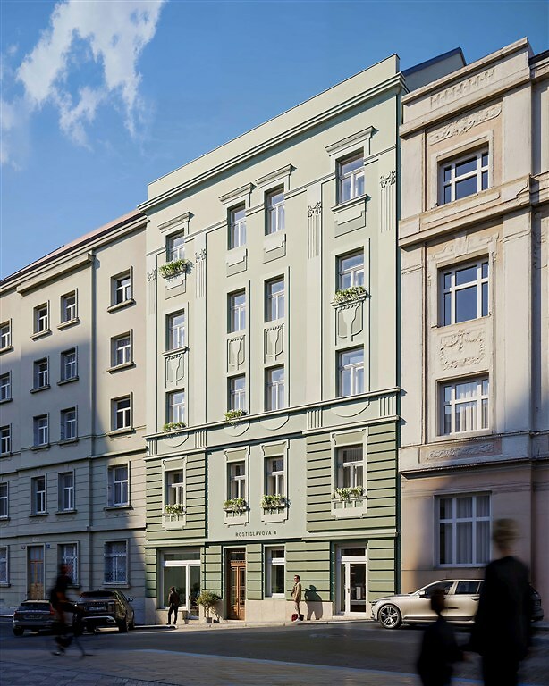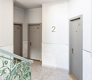 The offered duplex No. 51 with two bedroom and total area of 213.7 m² is located in a carefully renovated apartment building, on the 5th floor. The unit includes an attic of 115. 1 m² and a cellar of 8.6 m². The unit is finished to "shell & core" standard, i.e. to be finished according to your own needs. The whole house is undergoing a sensitive renovation and residents will be able to enjoy new common areas such as a bike room, a carriage room or a quiet courtyard for relaxation. The location offers a pleasant residential environment with full amenities nearby. Cafés, restaurants, shops, schools, medical services, and public transport stops are all within walking distance. The city’s green spaces and parks are also close by, offering ideal spots for relaxation or outdoor activities.