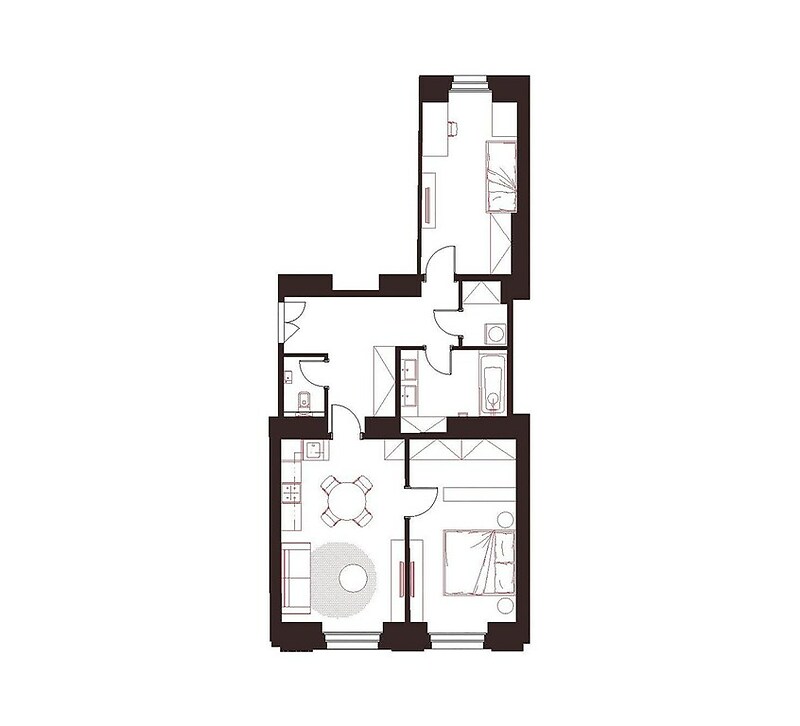 This airy apartment with a two-bedroom layout and a floor area of 80 m² is part of the new Heřmanova 24 residential project, which is being created through the careful reconstruction of an exceptional cubist house from the 1920s. This architectural gem, complete with the character of Letná, has retained its distinctive style, while the interiors have gained a new level of comfort and craftsmanship. The project combines the character of the building with the demands of contemporary living and offers a limited number of apartments with emphasis placed on detail, materials, and timelessness. Completion is planned for the first quarter of 2027. The floor plan of the apartment on the 1st floor includes a generous living room with preparation for a kitchen, two separate bedrooms, a spacious entrance hall, a practical dressing room, a bathroom, and a WC. The unit also includes a cellar. The equipment includes oak floors, wooden casement windows with double glazing, elegant interior doors, a bathroom with marble tiles and Laufen and Grohe sanitaryware, and discreetly designed radiators and electrical installation that does not disturb the overall aesthetic of the interior. The apartment will be completed in a fit-out design and will be move-in ready. The renovated building has representative common areas, a modern elevator, a stone staircase with a decorative railing, and new technical facilities. Residents have access to a sauna and a quiet place to sit among the greenery in the courtyard. The building is located in a quiet part of Letná on Heřmanova Street. Stromovka and Letenské sady parks are just a few steps away, while popular cafes, bistros, and designer shops can be found nearby. The National Gallery, Stromovka shopping center, and all services for everyday life are within walking distance. Strossmayerovo Square can be reached in five minutes, the Vltavská metro station is within an eight minutes’ walk, and the center of Prague can be reached by public transportation in twelve minutes. Letná offers the right balance of urban energy and the space to slow down. Heřmanova 24 is right in the middle of it all.