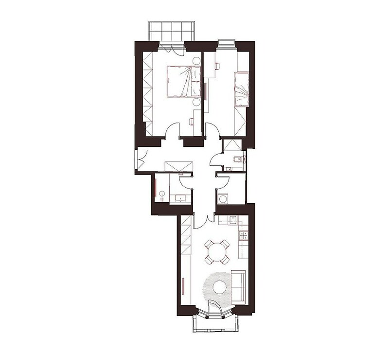 This airy apartment with a two-bedroom layout and a floor area of 84,1m² is part of the new Heřmanova 24 residential project, which is being created through the careful reconstruction of an exceptional cubist house from the 1920s. This architectural gem, complete with the character of Letná, has retained its distinctive style, while the interiors have gained a new level of comfort and craftsmanship. The project combines the character of the building with the demands of contemporary living and offers a limited number of apartments with emphasis placed on detail, materials, and timelessness. Completion is planned for the first quarter of 2027. The floor plan of the apartment on the 3rd, floor includes a generous living room with preparation for a kitchen, two separate bedrooms, a spacious entrance hall, a practical dressing room, a bathroom, and a WC. The unit also includes a balcony and a cellar. The equipment includes oak floors, wooden casement windows with double glazing, elegant interior doors, a bathroom with marble tiles and Laufen and Grohe sanitaryware, and discreetly designed radiators and electrical installation that does not disturb the overall aesthetic of the interior. The apartment will be completed in a fit-out design and will be move-in ready. The renovated building has representative common areas, a modern elevator, a stone staircase with a decorative railing, and new technical facilities. Residents have access to a sauna and a quiet place to sit among the greenery in the courtyard. The building is located in a quiet part of Letná on Heřmanova Street. Stromovka and Letenské sady parks are just a few steps away, while popular cafes, bistros, and designer shops can be found nearby. The National Gallery, Stromovka shopping center, and all services for everyday life are within walking distance. Strossmayerovo Square can be reached in five minutes, the Vltavská metro station is within an eight minutes’ walk, and the center of Prague can be reached by public transportation in twelve minutes. Letná offers the right balance of urban energy and the space to slow down. Heřmanova 24 is right in the middle of it all.