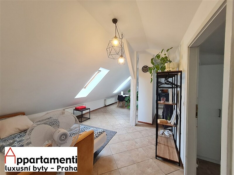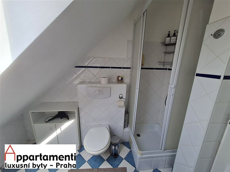 This attic studio of 58.2m2 has one bedroom, a spacious living room with a kitchenette, and a bathroom equipped with a shower, toilet, and bidet, as well as a sink. There is a balcony in the common areas. The apartment is located right in the historic heart of Prague's city center, near Wenceslas Square. It is currently rented out long-term, making it an excellent investment opportunity.