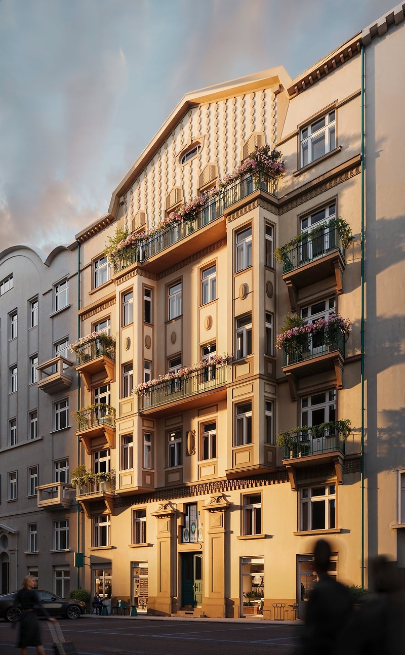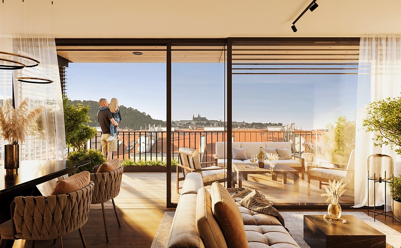 This generous four-bedroom apartment offering 137 m² of living space is located in the refined Pecháčkova 6 residential project. The development was created through a carefully executed reconstruction of a neoclassical building in Smíchov. Set in a peaceful riverside neighborhood, the apartment is just a short walk from the Smíchov embankment, nearby parks, and a full range of civic amenities. The apartment is situated on the 7th floor and features a well-designed layout comprising a spacious living room with preparation for a kitchenette, a large bedroom with direct access to the terrace and a private bathroom, two additional bedrooms, a study, a bathroom with a shower, a separate WC, a practical storage room, and an entrance hall offering ample space for built-in wardrobes. The unit further benefits from a 33.2 m² terrace and a 3.8 m² cellar. The white-wall finish provides a neutral base, allowing the interior to be customized to individual design preferences. Following a complete renovation of the common areas, the elegant apartment building will feature premium materials such as terrazzo flooring, cut glass, and Venetian stucco, complemented by modern security doors and a new glass elevator. Residents will also enjoy a revitalized courtyard and an on-site sauna, designed for comfort and relaxation. Smíchov is a peaceful residential district that blends the elegance of historic townhouses with the benefits of modern urban infrastructure. Just steps away lies the Smíchov embankment, offering a vibrant selection of bars, restaurants, and leisure options, while the city center is easily accessible within minutes by tram or metro.