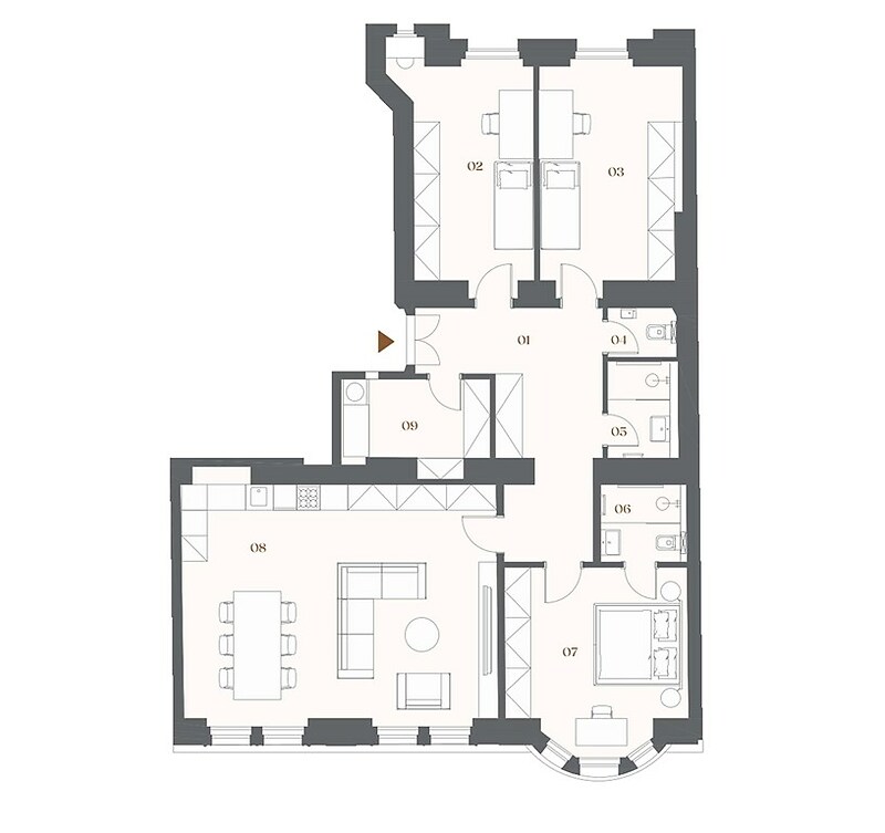 This north / south oriented three-bedroom apartment with a floor area of 135.1 m² is part of the new Bělehradská 29 residential project, which is being created by the complete reconstruction of a Neo-Baroque apartment building from 1910. It is located on the border of Vinohrady and Nusle - in a lively neighborhood with cafes, services, and greenery, just a minute from the Nuselské schody tram stop. Completion is planned for the 3rd quarter of 2026. The floor plan of the apartment on the 2nd floor includes a living room with preparation for a kitchen, three bedrooms, an entrance hall, a practical storage room, a bathroom with a shower, and a separate WC. The unit also includes a cellar space. The equipment includes oak floors, wooden casement windows with double-glazed panes, elegant interior doors, classic Laufen and Grohe sanitaryware in the bathroom, and discreet radiators and electrical installation that do not disturb the overall design of the interior. The apartment will be completed in a fit-out state - ready for immediate move-in. The building will be completely renovated. There will be representative common areas, a modern elevator, a renovated stone staircase with a decorative railing, and new technical facilities. Residents will have access to a sauna, fitness room, bicycle room and stroller room, and a quiet place to sit amongst the greenery in the courtyard. The building is situated on a quiet part of Bělehradská Street, just a few steps from the Nuselské schody tram stop. Popular restaurants such as Solo Bakery, Ô-mai coffee, Las Adelitas, and Da Pietro pizzeria are nearby, and Folimanka and Grébovka parks are also within walking distance. There are pharmacies, schools, fitness centers, and common services in the neighborhood. You can reach the I. P. Pavlova metro station by tram in four minutes, and the city center in ten.
