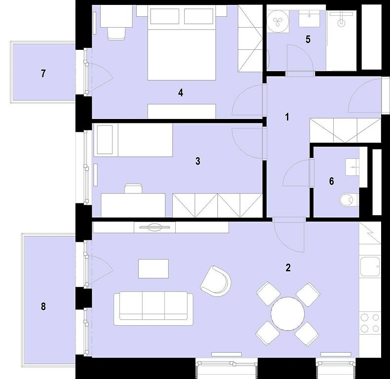This spacious two-bedroom apartment with a balcony is situated in the new Brno Jedna project, which offers modern urban housing with complete facilities and excellent access to the city center. Unit no. 1416 with a two-bedroom layout and a total area of 78.9 m² combines practicality, style, and comfort. The dominant feature of the apartment on the 4 floor is a large living room with a kitchenette, which directly invites you to meet, cook, and relax. Two separate bedrooms provide space for peaceful sleeping, a study, or a children's room. The bathroom is equipped with a modern shower and there is also a separate WC for maximum comfort in everyday life. Thanks to its orientation to the S, W, the interior is bright, pleasant and has an airy feel. The unit includes a balcony with an area of 8 m², ideal for relaxing evenings or for enjoying breakfast in the fresh air. The apartment will be ready to move into immediately with finished floors, a fitted bathroom, and a space for a kitchen unit. Standards include high quality materials, triple-glazed windows, and in selected units, preparation for outdoor shading. Brno Jedna, or Brno One, is more than just a residential building, it is a place where you will live well. The building boasts a roof terrace with a grill, a workout zone, a bike room, a laundry room, and a stroller room - all of which will offer you the comfort of urban life. A new district with a park, bike paths, and services is developing nearby. The city center is within reach in just 5 minutes by public transport or by car.