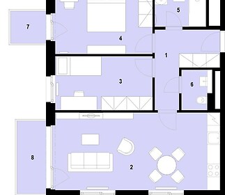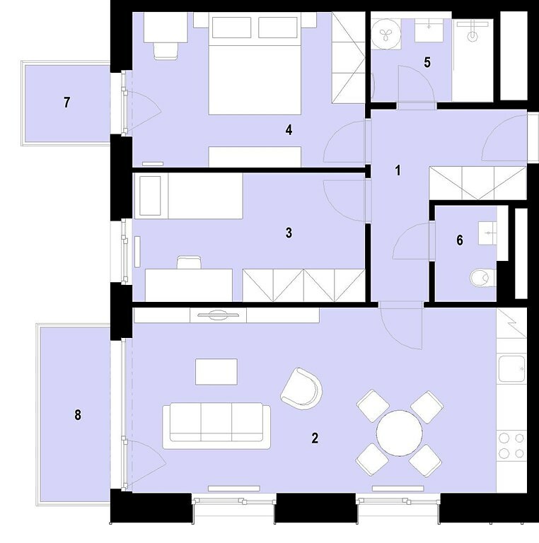This spacious two-bedroom apartment with a balcony is situated in the new Brno Jedna project, which offers modern urban housing with complete facilities and excellent access to the city center. Unit no. 1806 with a two-bedroom layout and a total area of 79 m² combines practicality, style, and comfort. The dominant feature of the apartment on the 8 floor is a large living room with a kitchenette, which directly invites you to meet, cook, and relax. Two separate bedrooms provide space for peaceful sleeping, a study, or a children's room. The bathroom is equipped with a modern shower and there is also a separate WC for maximum comfort in everyday life. Thanks to its orientation to the S, W, the interior is bright, pleasant and has an airy feel. The unit includes a balcony with an area of 8.1 m², ideal for relaxing evenings or for enjoying breakfast in the fresh air. The apartment will be ready to move into immediately with finished floors, a fitted bathroom, and a space for a kitchen unit. Standards include high quality materials, triple-glazed windows, and in selected units, preparation for outdoor shading. Brno Jedna, or Brno One, is more than just a residential building, it is a place where you will live well. The building boasts a roof terrace with a grill, a workout zone, a bike room, a laundry room, and a stroller room - all of which will offer you the comfort of urban life. A new district with a park, bike paths, and services is developing nearby. The city center is within reach in just 5 minutes by public transport or by car.