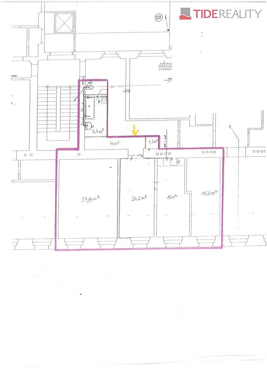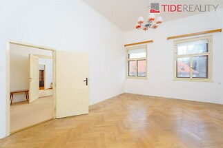 Unique investment opportunity! Exclusively on behalf of the owner, we offer for sale a very spacious, bright, and above all, quiet apartment located in the absolute center of Prague 1, on the 6th floor, i.e., the last inhabited floor (not attic!) of a beautifully renovated Art Nouveau building on Senovážné Square, directly opposite the Jindřišská Tower. This apartment with tremendous potential spreads over a total area of 91 m2 and offers a great variability for future rearrangement. The dividing walls between rooms are not load-bearing, some not even bricked, and the layout of rooms and new arrangement can be altered according to the individual requirements of the new owner. All 4 rooms (15m2, 15m2, 20m2, 28m2) have a ceiling height of about 4m (possible to install a gallery), southern exposure, and all offer a unique and unobstructed view of the Jindřišská Tower. The apartment is heated by an air-to-air heat pump with 4 split units in each living room, hot water is provided through a karma system, and gas is also installed in the kitchen. Original parquet floors in all rooms, wooden casement windows. Even though the apartment is located directly in the historical center, it is completely isolated from the hustle and bustle of the big city. This location has all public amenities in immediate vicinity, always within a comfortable walking distance. Nearby are tram stops, a few minutes' walk then Wenceslas Square with metro stations of all lines as well as Main and Masaryk railway stations. Shopping zones (Republic Square, Na Příkopě, Palladium, Slovanský Dům) are in the neighborhood. The building does not need to prove energy performance, class "G" does not correspond to the actual state. Available immediately!