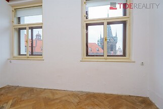 Unique investment opportunity! On exclusive behalf of the owner, we are offering for sale a very spacious, bright, and most importantly, quiet apartment located right in the heart of Prague 1, on the 6th floor, which is the last inhabited floor of a beautifully renovated Art Nouveau building on Senovážné Square, directly opposite the Jindřišská Tower. This apartment with amazing potential spans a total area of 91 m2 and offers great flexibility for future modifications. The partitioning walls between rooms are not load-bearing, some not even bricked, so the layout of the rooms and new designs can be changed from 3+1 according to the individual requirements of the new owner. All 4 rooms (15m2, 15m2, 20m2, 28m2) have a ceiling height of approximately 4 meters, face south, and each offers a unique and unobstructed view of the Jindřišská Tower. The apartment does not have central heating; heating is currently provided by air conditioning split units, water heating through karma, gas is also supplied to the kitchen. Original parquet floors in all rooms, wooden casement windows. Despite its location right in the historical center, the apartment is completely insulated from the hustle and bustle of the big city. This area offers all civic amenities in the immediate vicinity, always within a comfortable walking distance. Nearby are tram stops, a few minutes' walk to Wenceslas Square with metro stations of all lines as well as the Main and Masaryk Railway Stations. Shopping zones (Republic Square, Na Příkopě, Palladium, Slavic House) are in the neighborhood. Available immediately!
