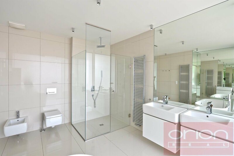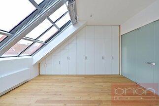 We are offering for rent an exceptional three bedroom duplex apartment with a total living area of 260.5 sqm and three terraces with a combined area of 193.5 sqm. The apartment is situated on the 5th floor of a fully renovated building in the highly sought-after residential district of Prague -Vinohrady. The highlight of the property is the stunning rooftop terrace with beautiful views of the iconic Church of the Most Sacred Heart of Our Lord overlooking Jiřího z Poděbrad Square. The lower level features an impressive 101 sqm living and entertaining area with a suspended rotating fireplace and direct access to the terrace. The space includes a luxury kitchen fitted with built-in appliances. The upper floor offers three bedrooms, two bathrooms with bathtubs, a separate toilet, a spacious walk-in closet, and access to the rooftop terrace. The apartment is equipped with wooden floors, built-in wardrobes, a washing machine and dryer, security entrance door, alarm system with the possibility of connection to a central security desk, and a video intercom. The building has undergone complete renovation, including the installation of a new elevator. Parking space in the building is available for rent. Jiřího z Poděbrad Square is a vibrant and popular neighborhood known for its cafés, restaurants, regular farmers’ markets, and excellent amenities. Riegrovy sady and other nearby parks are within walking distance, offering space for sports and relaxation. The location benefits from excellent public transport connections to the city center and other parts of Prague, as well as convenient access to the city ring road and major highways.