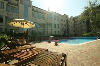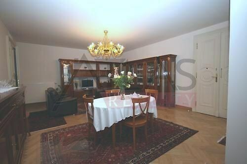 We offer a rental of a fully furnished apartment 3+kk, 109 sqm. The apartment is located on the 1st floor of a completely renovated classic Art Nouveau building with high ceilings and original decorations. There is an elevator in the building. The house is situated in a residential area of the historic center of Prague, just 200 m from Riegrovy Sady park, 300 m from the A line metro station Náměstí Míru, and 500 m from Wenceslas Square - Muzeum metro station of lines A and C and the shopping and cultural center of Prague. The apartment is fully furnished with pseudo-antique Italian furniture. The living room is 38 sqm, with a kitchenette equipped with a refrigerator with freezer, dishwasher, gas stove, extractor hood; also two bedrooms of 14 sqm and 18 sqm, a bathroom with a sink, corner bathtub, toilet, and bidet, and a second bathroom with a shower, toilet, and bidet. The apartment has a telephone line, high-speed internet, TV, satellite, parquet floors and tiles, and high-standard materials were used during the renovation. The building has underground garages, an elevator, a large swimming pool 8 x 11 m deep 1.2 meters with a hydro massage corner in the courtyard, surrounded by a terrace and greenery. There is also a CCTV system, security, and a caretaker in the building. Garage parking is available for a fee. Security and use of the pool are included in the price. For more information and managing visit please don´t hesitate to contact our English speaking agent Jan +420 775609 626.