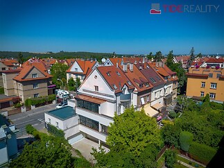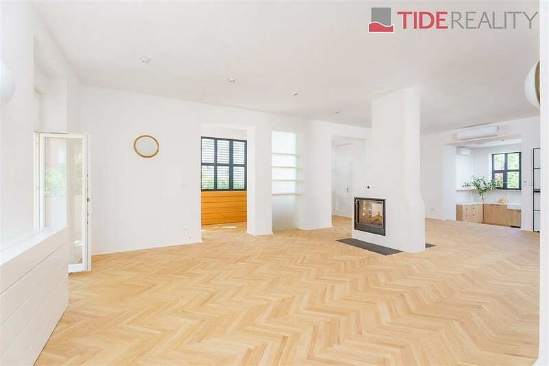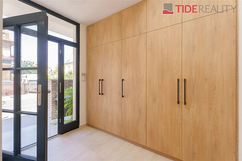 We offer for rent a completely newly renovated terraced house on Hanspaulka in the highest quality. The house is unfurnished with a fully equipped open and modern kitchen. The house is very well and sensitively designed, suitable for a large family, or for someone looking for quality housing and the possibility of having a separate office in the house. In the basement of the house, there is an independent apartment for guests (or an office) with a bathroom, a small kitchen, and direct access to a small but cozy garden with an outdoor fireplace. On the ground floor, there is a spacious living room with a fireplace and a fully equipped kitchen and a separate toilet. From the room, there is access to a spacious balcony leading to the garden. On the 1st floor, there are 2 large bedrooms, with a luxurious and modern bathroom (with a freestanding bathtub, shower enclosure, and toilet) entrance to a 22 m2 balcony and a 15 m2 large terrace leading to the street. On the 2nd floor, there are another 2 bedrooms with a bathroom and a balcony from which there is a beautiful view over the surrounding gardens. On the top floor, there is a large attic, which can be used as a bedroom, or possibly a playroom, or TV room. The highest quality materials, wooden floors, and tiles are used everywhere. The house has 2 garages in total for 3 cars, air conditioning in all rooms, a sauna, a wine cellar, and a giant refrigerator for groceries available in the house. Hanspaulka is among the most prestigious and sought-after locations. With excellent connections to the metro (Bořislavka, Hradčanská) and just a few minutes to parks and surrounding greenery. Rent 180,000 CZK + 20,000 deposits for all services. Available immediately.