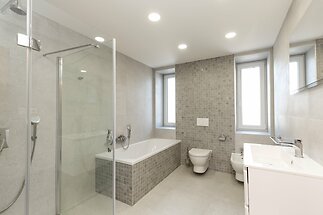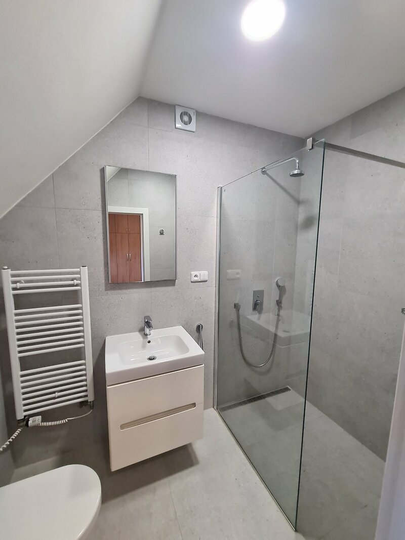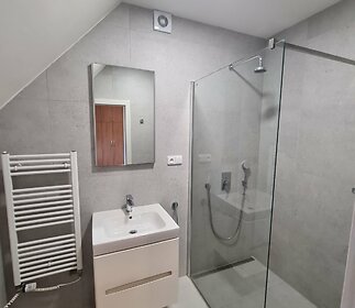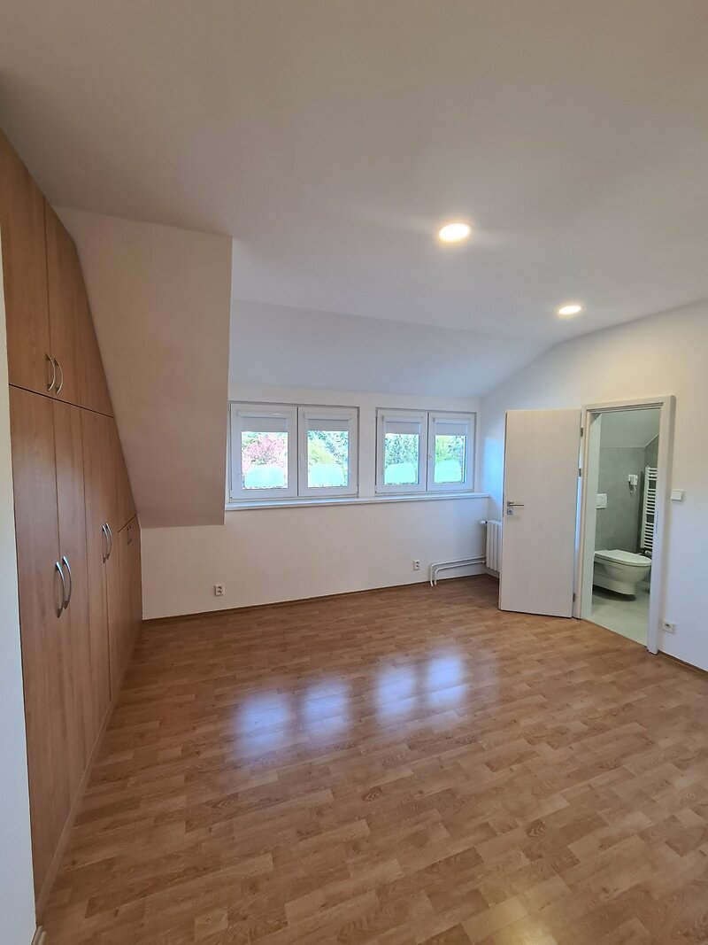 We offer for rent a detached five bedroom family house with a well-kept garden with an automatic irrigation system near the Průhonice Park. The unfurnished house with a living area of 350 sqm offers on the main floor a fully equipped kitchen (dishwasher, electric stove with ceramic hob, extractor hood, fridge with freezer), dining room, spacious living room with fireplace (53 sqm) with access to the terrace with outdoor grill, 1 bedroom, 1 bathroom with bath, shower, two sinks, toilet and bidet, guest toilet and entrance hall with built-in wardrobe. On the upper floor there are 4 bedrooms, a dressing room, built-in wardrobes, 1 bathroom with bath, shower and sink, 1 bathroom with sink, shower and toilet. In the basement of the house there is 1 room that can be used as a guest room or hobby room, a laundry room, a sauna with a relaxation room and a shower, a storage room with technical facilities. In the basement there is a garage for 1 car and next to the house there is a second garage. The house is equipped with electric heating, a telephone line, an alarm with the possibility of connecting to the police, and TV/SAT wiring. The floors are parquet in the rooms, tiles in the other rooms. The house is located in a pleasant and quiet environment in a closed area with a relaxation center in the center of the village, just a 100 m walk from the main square with many restaurants, cafes and shops and the entrance to Průhonice Park. The main advantage of this location is easy access to the city center and comfortable living. There is a D1 highway exit in the direction of Prague/Brno nearby, and there is good access by car or bus to international schools. Průhonice is one of the very popular and sought-after locations, especially suitable for families with children.
