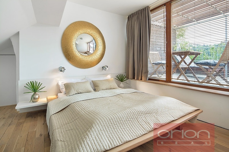 We offer for rent a duplex apartment one bedroom apartment with a terrace on the 5th floor of a renovated 19th century house in Prague 5. The house has an elevator. The furnished apartment with an area of 55 sqm offers a kitchen fully equipped with all appliances, a bathroom, a dressing room and a living room on the lower floor, and a bedroom with access to the terrace on the upper floor. The apartment is equipped with air conditioning, TV/SAT/WIFI. Location with excellent transport accessibility by car and public transport, Anděl metro station is 5 minutes by tram, U Zvonu tram stop is a few meters from the house. Nearby are restaurants, shops and the popular Petřínské sady park.