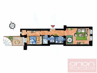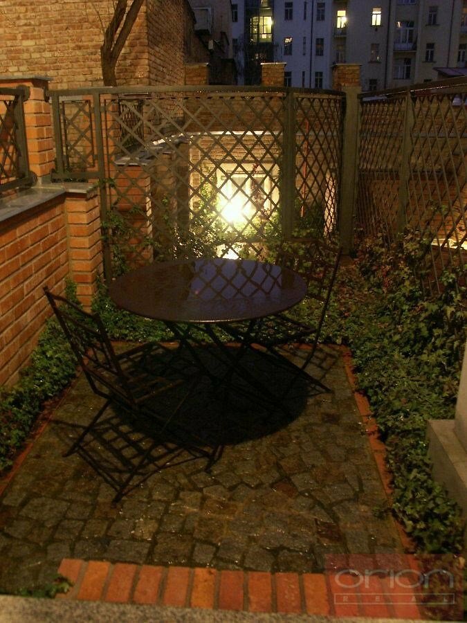 We offer for rent a fully furnished one bedroom apartment (54 sqm) with a small private garden (6 sqm) on the ground floor of a house in the neo-baroque style, which was sensitively renovated while preserving the original building elements. The house is located in a popular residential quarter of Prague 2 - Vinohrady, near the Riegrovy sady park, opposite the Vinohrady Theater, a 5-minute walk from Wenceslas Square and the National Museum. The apartment offers an entrance hall, a living room connected to the dining room, a fully equipped kitchen, a bedroom, a dressing room, a bathroom with a bathtub, toilet and bidet, a pantry. The apartment is equipped with wooden parquet and tile floors, satellite, internet connection. Tenants can use the shared garden in the courtyard of the house spread over two levels with carefully maintained greenery and a fountain. The greenery together with the illuminated fountain create an impressive atmosphere, especially at night. Sought-after location of Vinohrady, all civic amenities in the area. Excellent transport connections by public transport and car, metro and tram station on Náměstí Míru a few steps from the house. In the immediate vicinity there are many restaurants, cafes, bistros, local shops.