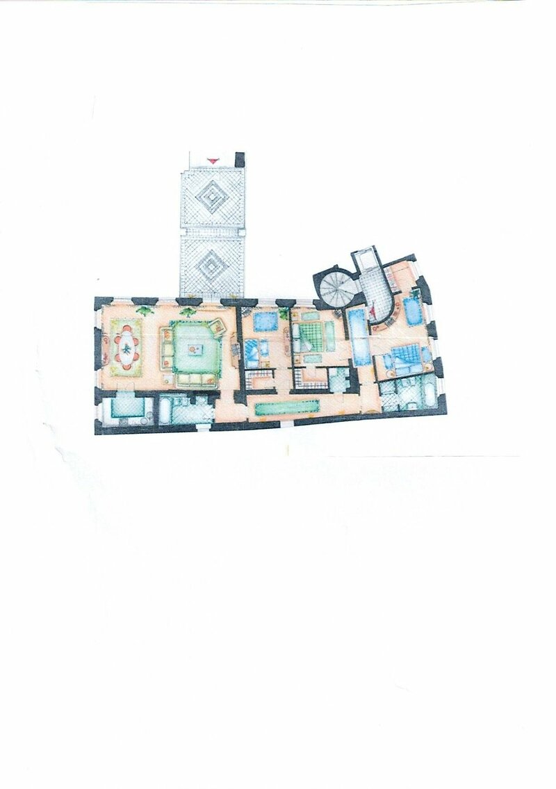 We offer for rent a luxurious bright three bedroom apartment with a spacious terrace on the 2nd floor of a renovated baroque house with an elevator in a prestigious location of Prague 1. The house and the apartment have been qualitatively renovated while preserving many of the original architectural features. The partially furnished apartment has an area of 175 sqm and offers an entrance hall, fully equipped kitchen, living room, dining room, 3 bedrooms (each with its own dressing room), 2 bathrooms - bathtub and shower, 2 toilets, storage room and a terrace of 35 sqm facing south into the garden. The apartment has 2 entrances, one of them is directly from the elevator. The apartment is equipped with wooden parquet floors, Italian ceramic tiles and tiles, stucco, built-in wardrobes, washing machine, dryer, dishwasher, gas heating, internet and satellite connection. The apartment offers beautiful views of Prague Castle and Petřín Hill. Attractive location of Malá Strana, all civic amenities and excellent transport connections. The apartment is located just a few minutes from the Malostranské náměstí tram stop. Nearby are Lobkovická Garden, Malostranská Garden, restaurants, bistros.