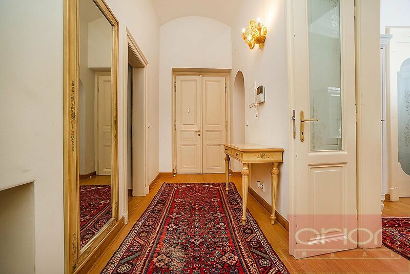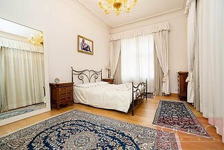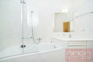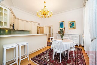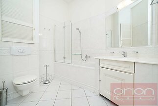 We offer for rent a luxuriously furnished three bedroom partment with a total area of 120 sqm on the 1st floor of a renovated apartment building with an elevator in a quiet street in the center of Prague 1 - New Town, a few steps from the Náměstí republiky Square, where is the Palladium shopping center. The stylishly furnished apartment offers an entrance hall, living room, fully equipped kitchen, 2-3 bedrooms - one with a private bathroom with a bathtub and toilet, the second bathroom with a shower, toilet and bidet. The apartment is equipped with wooden parquet and tiles, air conditioning, it is equipped to a high standard including dishes and towels. The location has all civic amenities, restaurants, cafes, shops, Letná Park is nearby. A few minutes walk to the metro and tram station Náměstí Republiky.