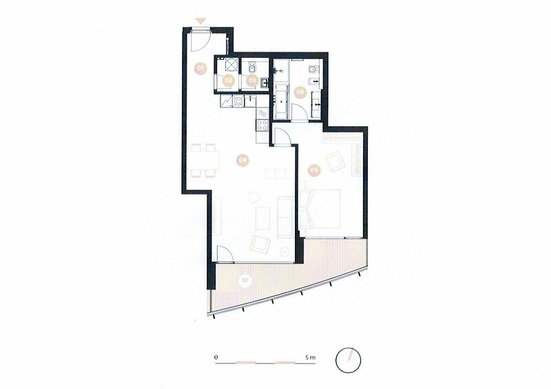 We offer for rent a luxury, air-conditioned one bedroom apartment with a terrace on the 3rd floor of the new Ellipsis Residence building with a reception, elevator, underground garage, wellness - swimming pool, sauna, and a large garden with a landscaped park in the Prague 5 - Smíchov location with excellent connections to the center, to shopping center Nový Smíchov, to the German and French schools. The furnished apartment with a size of 73.64 sqm offers an entrance hall, a spacious living room open with a dining room and a fully equipped kitchen with access to a terrace of 14,28 sqm, a bedroom, a bathroom with a bathtub, a shower, a bidet and a toilet, guest toilet and laundry room. Quality materials, wooden floors, large format tiles, French windows, security doors, internet, A/C. Possibility to rent a garage space for extra fee EUR 230 + 21%VAT/month. A popular location with good transport links, within walking distance to the Anděl metro and tram station, to Petřínské sady park. Rent 2,200 EUR payable in EUR + membership fee for the use of wellness 2500 CZK/pers/month. The rent includes energy consumption, internet and cleaning service twice a month. The Prisma Institut fitness center is also located on the ground floor of the building. The apartment is intended for medium-term rental, the minimum period of accommodation is one month.