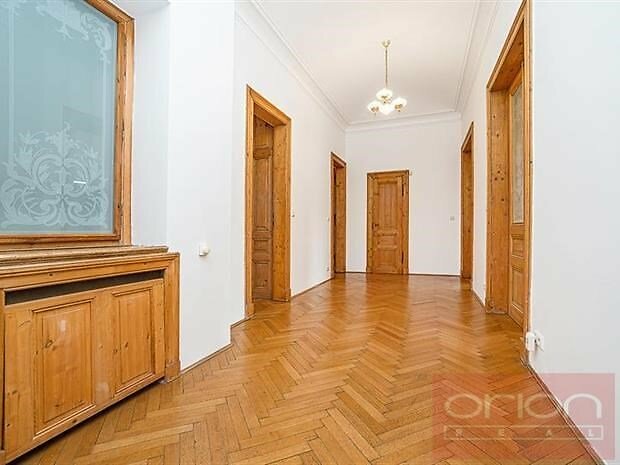 We offer for rent a luxury four bedroom apartment on the 4th floor of an Art Nouveau building with an elevator, located in the attractive district of Prague 2 - Vinohrady, opposite the Vinohradské Theatre building, just a few meters from Náměstí Míru square. The apartment with a total area of 255 sqm offers an entrance hall, fully equipped kitchen, dining room, living room, 3 bedrooms, two of which have their own bathroom with marble tiles (bath, shower, toilet, bidet), one bedroom has a balcony facing the courtyard, a utility room with a washing machine, dryer and storage space, a separate bathroom and a separate toilet. The floors are original renovated parquet, the apartment features built-in wardrobes, security doors, internet connection, gas heating, high ceilings. Possibility of renting a garage space in the underground garage for an extra fee of 200 Eur/month. Location with excellent transport accessibility, civic amenities, in the vicinity there are many restaurants, cafes, bistros, shops and other services. A few steps from the house are tram, bus and metro stations. Wenceslas Square or Riegrovy sady park are just a few minutes walk. Rent 4200 EUR per month.