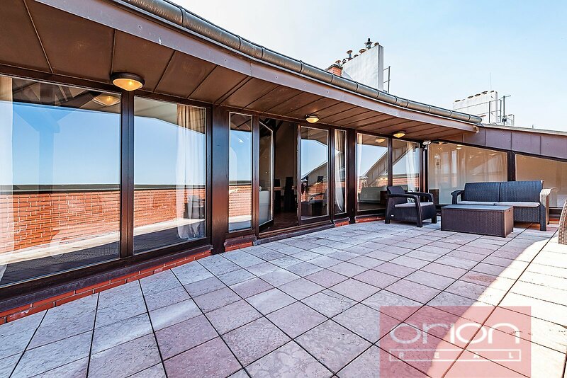We offer for rent a luxury three bedroom - three bathroom apartment (282 sqm) with 23 sqm terrace on the 5th floor of an Art Nouveau building with an elevator, located in a popular residential area of Prague 2 - Vinohrady, just a few meters from Náměstí Míru. The partially furnished, spacious apartment offers an entrance hall, spacious living room with access to a large terrace, dinning room, fully equipped kitchen, 3 bedrooms, 3 bathrooms (bath, toilet, bidet, shower), guest toilet and utility room with washing machine and dryer and 2 open galleries. The apartment is equipped with wooden parquet and marble tiles in the bathrooms, internet, satellite. The location has excellent transport accessibility, civic amenities, there are many restaurants, cafes, bistros, shops and other services in the vicinity. A few steps from the house are tram, bus and metro stations, Wenceslas Square or the Riegrovy sady park are just a few minutes walk. Rent 4.000 EUR per month. Possibility to rent 1 parking space in the underground garage for extra fee.