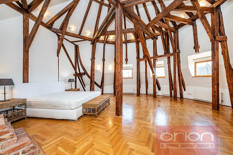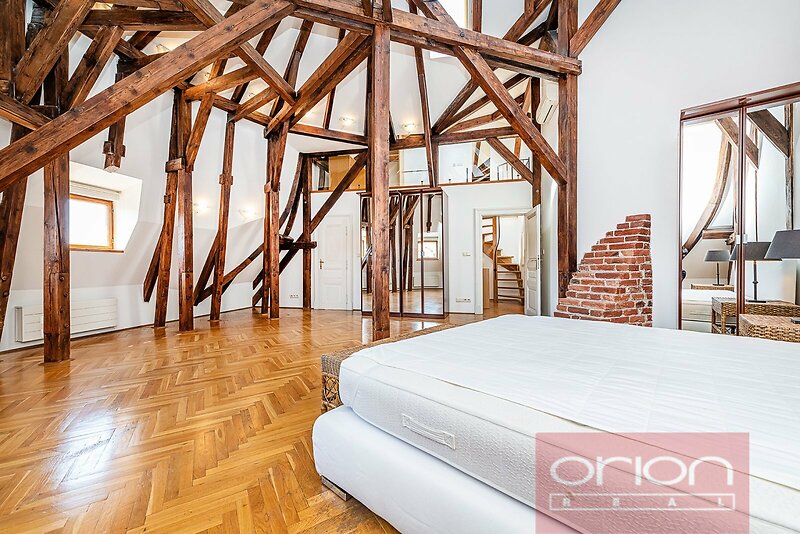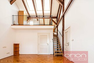 We offer for rent a luxury three bedroom - three bathroom apartment (282 sqm) with 23 sqm terrace on the 5th floor of an Art Nouveau building with an elevator, located in a popular residential area of Prague 2 - Vinohrady, just a few meters from Náměstí Míru. The partially furnished, spacious apartment offers an entrance hall, spacious living room with access to a large terrace, dinning room, fully equipped kitchen, 3 bedrooms, 3 bathrooms (bath, toilet, bidet, shower), guest toilet and utility room with washing machine and dryer and 2 open galleries. The apartment is equipped with wooden parquet and marble tiles in the bathrooms, internet, satellite. The location has excellent transport accessibility, civic amenities, there are many restaurants, cafes, bistros, shops and other services in the vicinity. A few steps from the house are tram, bus and metro stations, Wenceslas Square or the Riegrovy sady park are just a few minutes walk. Rent 4.200 EUR per month. Possibility to rent 1 parking space in the underground garage for extra fee.