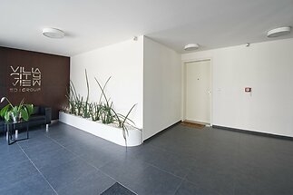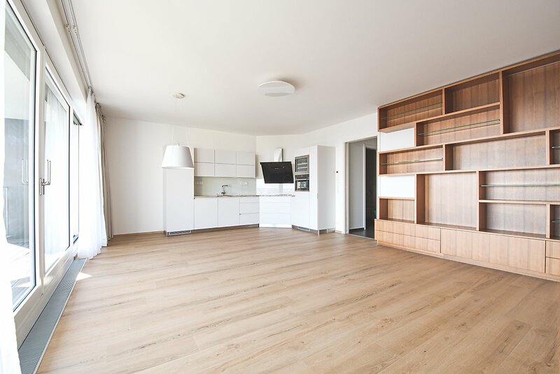We offer for rent a modern apartment with two parking spaces in the Villa City View Residence in Prague 5 - Smíchov. This 2-bedroom apartment with a living room and kitchenette (96.5 m²) features a terrace (6 m²) with a beautiful city view. It is located on the 1st floor and offers barrier-free access both from the entrance to the residence and from the garage. The layout includes an entrance hall with storage space, a spacious living room connected to a dining area and kitchen with access to the terrace, and two bedrooms. The master bedroom has an en-suite bathroom with a shower and toilet, while there is also a second bathroom with a bathtub and toilet. Both bedrooms have built-in wardrobes, and the living room is equipped with a designer shelving system. The modern kitchen is fully fitted with appliances, including a Küppersbusch hob with a wok system, a fridge with freezer, dishwasher, and oven. The apartment features high-quality wooden floors and tiles. It is equipped with external blinds in all rooms, a security door, and an alarm system. The property includes one parking space in the underground garage, one outdoor parking space, and a large storage cellar. The building is situated in a quiet area of Prague 5, offering plenty of privacy and comfortable living. There is excellent access by car and public transport to the Anděl shopping center, where there is a metro and tram station, as well as easy connections to the city center, Václav Havel Airport, and international schools.Available from April 11th, 2026, viewings now.