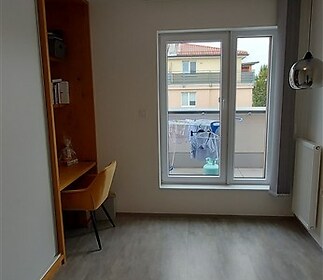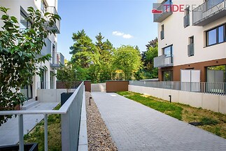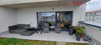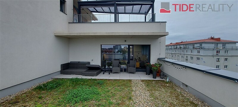 We offer for rent a modern, unfurnished 3+kk apartment (75 m²) with a large terrace (50 m²) and a parking space in the underground garage. The apartment is located in a recently completed new building in a quiet area in Strašnice, a 10-minute walk from the Strašnická metro station. The apartment consists of a living room connected with a fully equipped and modern kitchen with direct access to an amazing and spacious partly grassed private terrace, 2 bedrooms, both leading out to a long balcony ( 10 sq.m.) and situated in a quiet and peaceful area, a bathroom with a shower, a separate toilet, and a hallway. A cellar storage in the basement of the building is also included in the rent. The apartment has built-in wardrobes and vertical blinds on all windows. Situated on the 7th floor with an elevator and facing southwest. Available from January 1, 2026. The apartment is approved as a studio, so it is also suitable for offices or companies that are VAT payers. PENB - B