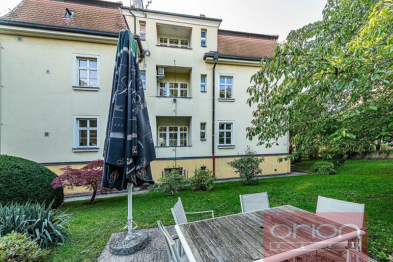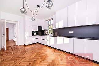 We offer for rent a newly renovated two bedroom apartment on the 1st floor of a villa with a well-kept garden in the Hanspaulka residential area in the sought-after location of Prague 6. The total area of the unfurnished apartment is 137 sqm and offers an entrance hall, a spacious living room with access to a balocny 3 sqm, a kitchen equipped with all appliances and connected to a dining area, 2 bedrooms, 1 bathroom with a corner bath, separate shower and toilet, and guest toilet. The apartment is equipped with air conditioning, gas heating, a Jablotron security system with the option of connecting to a central security desk (PCO) and a storage room on the ground floor of the villa. The rent includes 1 car parking spot on the plot under a lock and the use of garden. The house is situated in residential area of Hanspaulka, Prague 6 with all civic amenities nearby: restaurants, cafes, shops, Bořislavka shopping center, international schools ISP, PBIS, RiversideSchool, tennis courts, sports fields. Good transport connections, 5 minutes walk to the tram and bus stations with direct connection to the metro station Bořislavka or Hradčanská. 15 minutes by car to the city center or to Václav Havel Airport and the Prague Ring Road. Divoká Šárka nature reserve is within walking distance.
