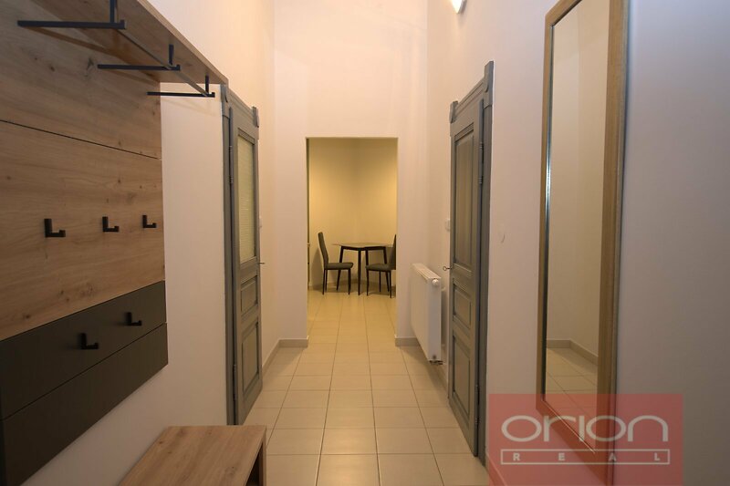 We offer for rent a renovated flat on the upper ground floor of an Art Nouveau apartment building. The 1+1 flat has an area of 47.3 m² and offers a hallway, a kitchen with a new kitchen unit and appliances (fridge with freezer, dishwasher, hob and oven) and a dining table with chairs, a large room, a bathroom with a shower and a toilet. There are two storage rooms in the flat, one with a gas boiler and a washer/dryer, the other can be used as a closet. The flat has high ceilings, oak flooring in the room, and tile flooring in the other rooms. The building is located in the popular Prague 3 - Žižkov district, just a few minutes' walk from Jiřího z Poděbrad Square and Riegrovy sady Park. All amenities are available in the area: shops, restaurants, bars, bakeries, and the Flóra shopping center is also nearby. Jiřího z Poděbrad metro station and Olšanské náměstí or Vinohradská tram stations are within walking distance.