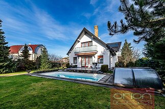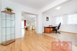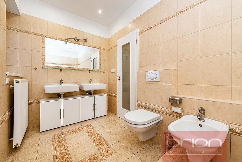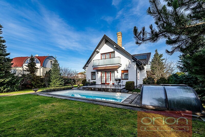 We offer for rent a spacious 5 bedroom family house with a garden and a swimming pool in a quiet area of ​​Prague 6 - Suchdol. The house with a total area of ​​253 sqm offers on the lower floor an entrance hall, a spacious living room with a dining area, a fireplace and direct access to the terrace with a swimming pool, a separate kitchen with all appliances, two bedrooms, a bathroom, a separate guest toilet and a utility room. On the upper floor there is a second living room/game room with access to the balcony, two bedrooms, a work area, a bathroom and a storage space. The basement of the house offers extensive storage space, a shower, a toilet and a garage. The low-cost house is equipped with an economical heating system with solar collectors, the equipment includes a central vacuum cleaner, electric blinds, underfloor heating, parquet, tiles and carpets. A well-maintained garden with fruit trees measuring 800 sqm ensures plenty of privacy and a pleasant space to relax Good transport accessibility to the city center, international schools, Václav Havel International Airport and the highway network. The place has all civic amenities: shops, restaurants, medical facilities, playgrounds, kindergartens and elementary schools. Popular location with plenty of greenery, near the Únětický potok nature reserve and the Tiché Údolí nature reserve.