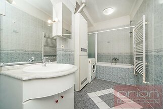 We offer for rent a spacious (87sqm), partially furnished one bedroom apartment with a balcony on the 1st floor of an apartment building with an elevator in the sought-after location of Prague 2 - Vinohrady, close to Náměstí Míru square. The apartment offers an entrance hall, living room with kitchen, bedroom with access to a balcony facing a quiet courtyard and a bathroom with bathtub and toilet. The apartment is equipped with a dinning table with chairs, sofa, bed and wardrobes in the bedroom, washing machine and gas boiler for water heating and heating. The floors are wooden parquet and tiles. The sought-after location of Vinohrady with all civic amenities and excellent transport connections by car and public transport. The Náměstí míru metro and tram station is a short walk from the house, and by car there is a close access to the Pražská magistrála. In the immediate vicinity there are many cafes, restaurants, bars and local shops, as well as the popular Riegrovy sady park. Possibility to rent a parking space for an extra fee. Available to move in from March 1, 2026, viewings on request.