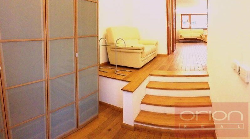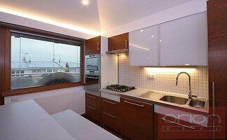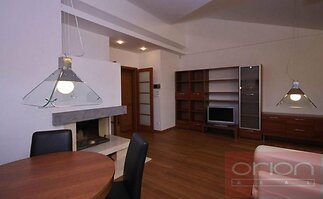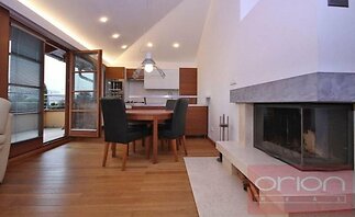 We offer for rent a spacious sunny two bedrooms apartment with a terrace on the 2nd floor of a four-story villa in a quiet residential area of ​​Prague 5 - Jinonice, near the protected nature park Vidoule. The apartment with a total area of ​​98 sqm offers a living room with a fireplace and a fully equipped kitchen with access to a 35 sqm terrace facing south with a beautiful view, 2 bedrooms, a bathroom with a bathtub and a toilet, and a separate toilet. The apartment is partially furnished, the equipment includes solid oak wood floors, doors with safety glass, Marazzi stone tiles, videophone and alarm. Location with excellent transport accessibility and all civic amenities. The nearest shopping center Galerie Nové Butovice is about a 10-minute walk away, as is the German International School. The French Lyceum is about 15 minutes by car. Nové Butovice metro and bus station is a 5-minute walk from the villa. There is outside gated parking for one car which is included in the rent. The apartment can be fully furnished by agreement.