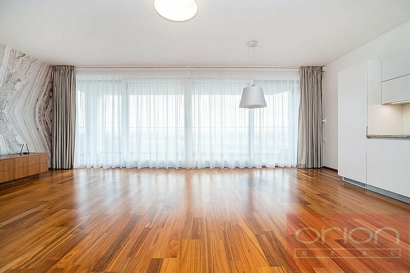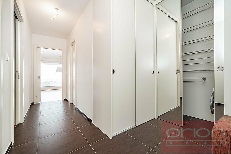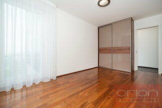 We offer for rent a spacious two bedroom apartment with a terrace located on the 1st floor of the new modern residential building Villa City View in Prague 5 - Smíchov. The apartment with a total area of 96.5 sqm offers an entrance hall with storage space, a large living room with a dining area and a kitchen and access to the terrace with a beautiful view of the city, 2 bedrooms, of which the master bedroom has its own bathroom with a shower and toilet, as well as a second bathroom with a bathtub and toilet. The bedrooms have built-in wardrobes, the living room is equipped with a designer shelving system. The modern kitchen is equipped with appliances, a Küppersbusch hob with the Vok system, a fridge with freezer, a dishwasher and an oven. The floors are high-quality parquet and tiles. The apartment is equipped with external blinds in all rooms, has a security door, an alarm and includes one garage space in the underground garage, one outdoor parking space and a large storage. The house is situated in a quiet area of Prague 5, offering plenty of privacy and pleasant living. Excellent connections by car and public transport to the Anděl shopping centre, where there is a metro and tram station, to the city centre, to Václav Havel Airport, to international schools. Available from March 1. 2026, viewings by request.